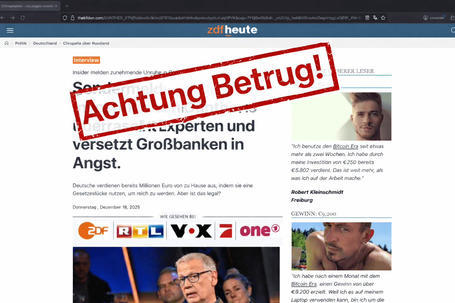 Mehr ErfahrenEin derzeit kursierender Online-Beitrag erweckt den Eindruck einer seriösen ZDF-Meldung und nutzt den Namen Günther Jauch, um für eine angeblich lukrative Krypto-Investition zu werben. Mit reißerischen Überschriften, gefälschten Zitaten, manipulierten…